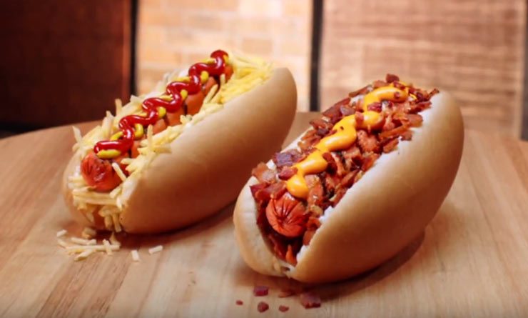 São duas versões do chamado Grill Dog: o clássico, que leva mostarda, ketchup, batata palha e maionese da marca, e o Cheddar Bacon que, como o próprio o nome sugere, vem com os adicionais de bacon e queijo cheddar.